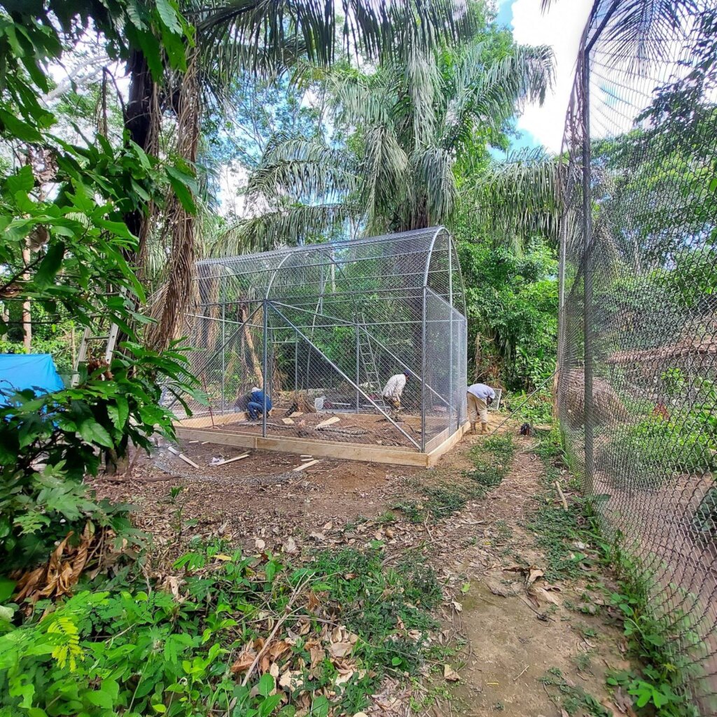 Felines rescued from trafficking are especially hard to release – after a life in captivity, a puma or jaguar would be sure to seek out humans for food, which would result in them starving or being killed. Therefore, CIWY provides lifelong sanctuary to most felines we receive, giving them the next best thing to life in the wild: a large open-aired enclosure in the jungle, with appropriate food and enrichment, as well as daily walks through the jungle, depending on the individual animal’s behavior and the number of volunteers available.