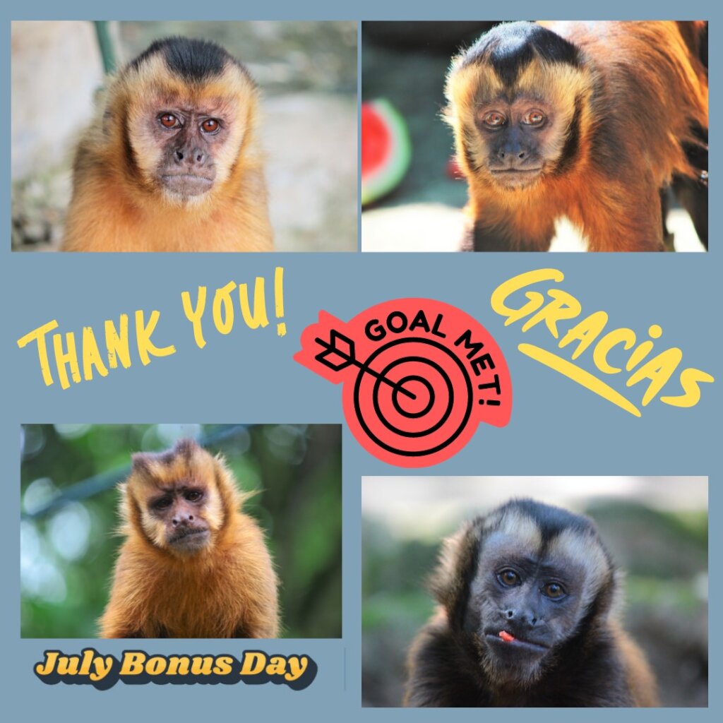 This week we had a VERY successful matching campaign. We set a goal of $10,000 for the 2nd capuchin area at Jacj Cuisi, and raised it in two days! Thank you so much to everyone who participated in July Bonus Day. The move from Machia to Jacj Cuisi is a huge undertaking, but thanks to our supporters we are steadily making it happen.