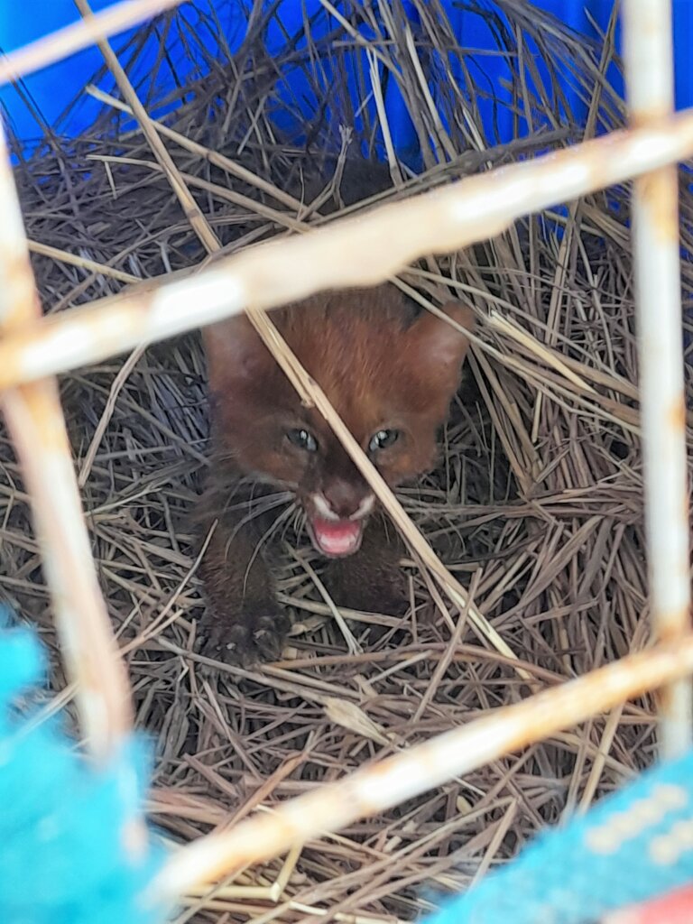 Un granjero los salvó del fuego y nuestro equipo buscó extensamente a su madre, sin suerte. Al parecer, murió en el incendio o se separó y no pudo encontrar el camino de regreso a sus cachorros. Los jóvenes cachorros estaban indefensos sin ella, pero físicamente sólo sufrieron quemaduras menores. Nuestro equipo pudo rehabilitarlos sin contacto humano directo para que no perdieran el miedo a los humanos. La alimentación se realizó de forma discreta y rápida, sin que pudieran ver al personal que les daba de comer para que no relacionasen a los humanos con comida. Se les daban presas vivas para cazar. Las cámaras trampa nos permitieron observar cómo jugaban entre ellos y aprendían a trepar, saltar, cazar su comida, y pelear como buenos hermanos juguetones. Después de varios meses, los hermanos crecieron grandes y fuertes, ¡y les abrimos las puertas! Seguimos poniendo comida en su recinto por si querían regresar, pero las imágenes de las cámaras los mostraban explorando la jungla con confianza. ¡Así se hace, pequeños!