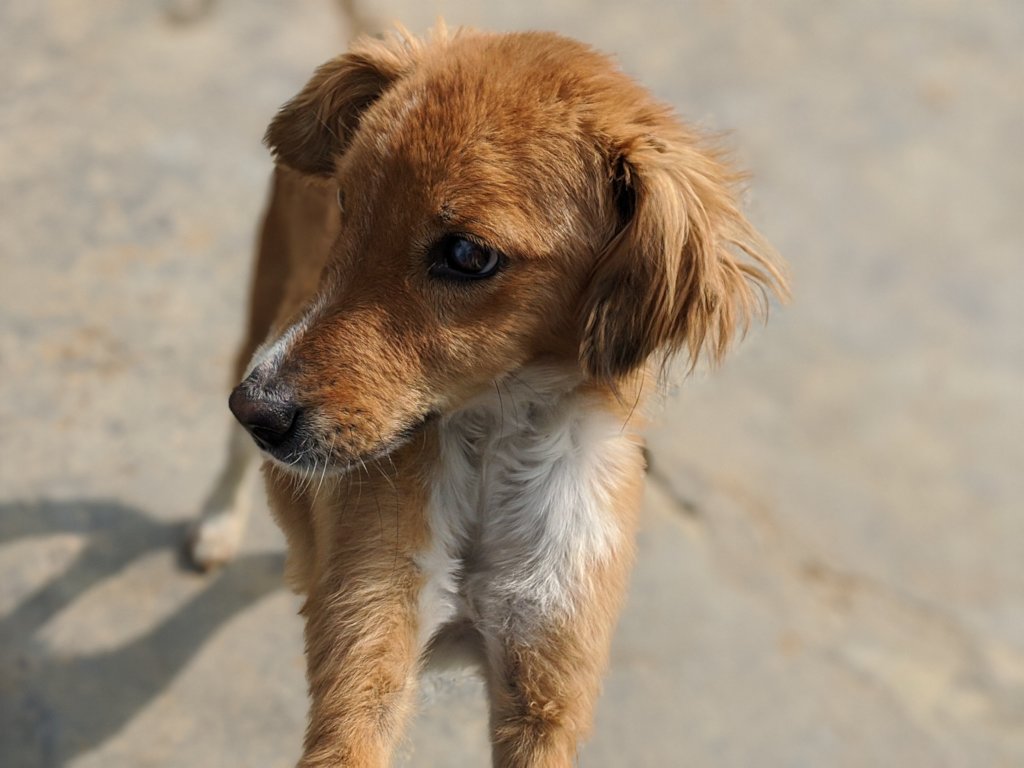 Mary is a delicate and skittish older puppy who spent a long time in our quarantine kennels fighting hepatitis. She also had a wound to her front paw which has left her with a slight deformity. Recovered from the hepatitis she is now spending time in our puppy yard to socialise and play. She is very sweet and we’re sure she will be rehomed as soon as she is ready.