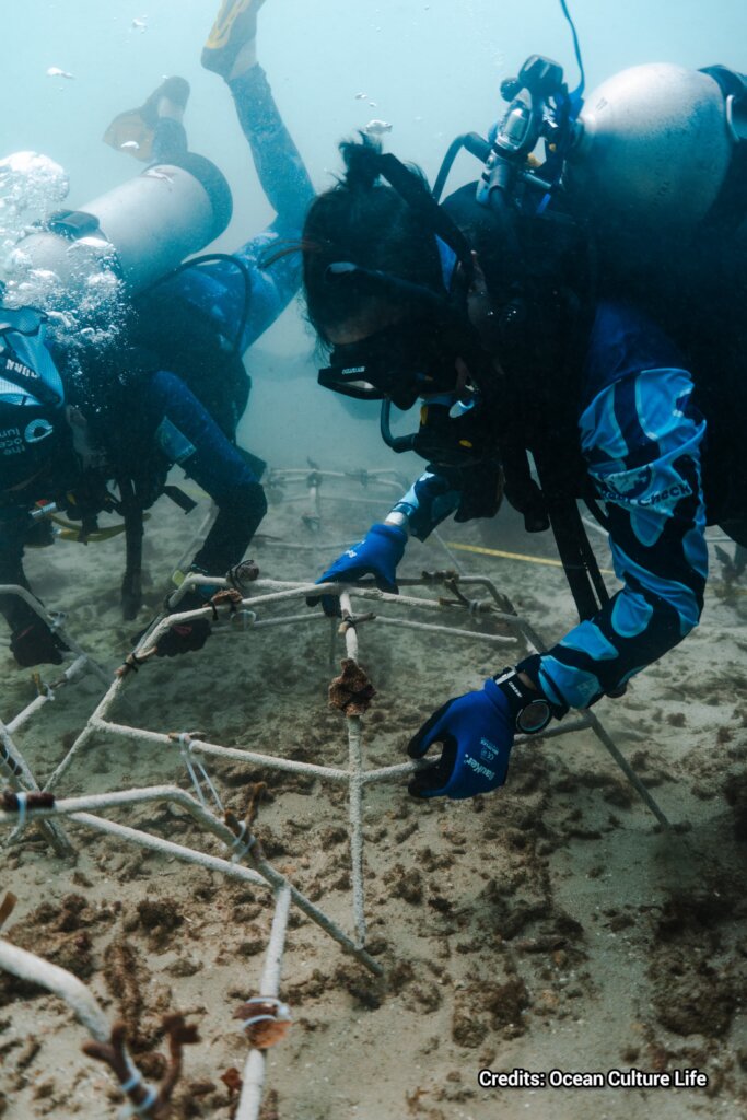 Maintenance dives were successfully carried out on all 400 Reef Stars from the first 100 and the 300 installed in September. During the visits to the sites, the structures were carefully cleaned to remove sediment and algae that could compete with coral fragments or limit their growth. This maintenance is a critical step to ensure optimal conditions during the early and most vulnerable stages of coral development.