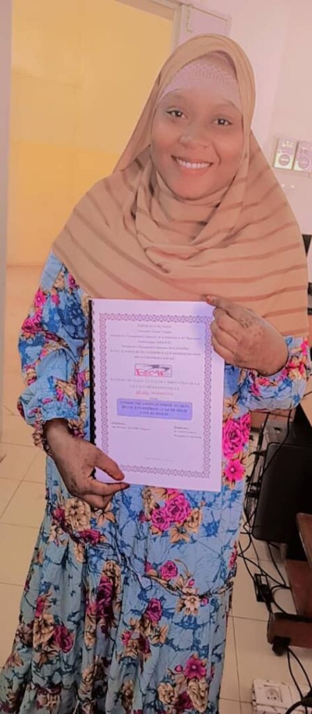Climbing higher, the pyramid reveals individual stories of courage. One of the brightest is Aichatou, a determined student who earned her Bachelor’s degree in Law despite facing a severe eye condition. Thanks to timely medical intervention, funded glasses, and ongoing medicine provided by the association, she was able to continue her studies without interruption.