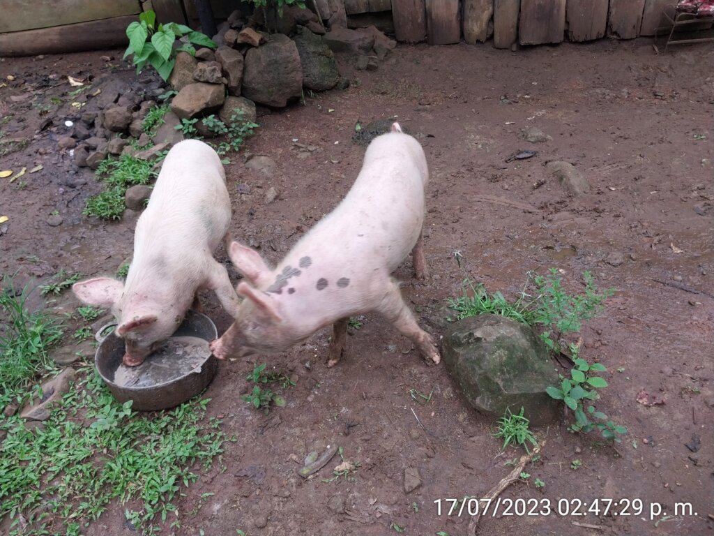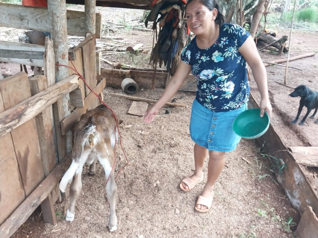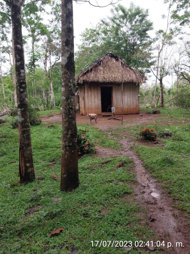 Eveling is 29 years old, married with one daughter. She has a modest level of education. She lives in the community of La Culebra, about 11 kilometers from the Self-Help International headquarters at San Carlos, Nicaragua, in the Department of Rio San Juan. Eveling told us that her family was originally from Chinandega, a city about 410 km. from San Carlos. They decided to start a new life in Rio San Juan when she was barely one year old. The family lived in the El Delirio community on the farm of a friend who had asked her parents to come to help work it. The owner of the farm allowed them to live on the farm and grow food such as rice, beans and corn. They also planted fruit trees such as avocado, orange, mango, and papaya, in addition to raising pigs and chickens. They spent nine years living on that farm, until one day Eveling´s parents decided that it was time for them to find their own property. They sold all the animals they had and with savings from their crops they managed to buy a house in a town called Cruz Verde. Eveling along with her brothers began to attend school for the first time. She was ten years old at that time.
