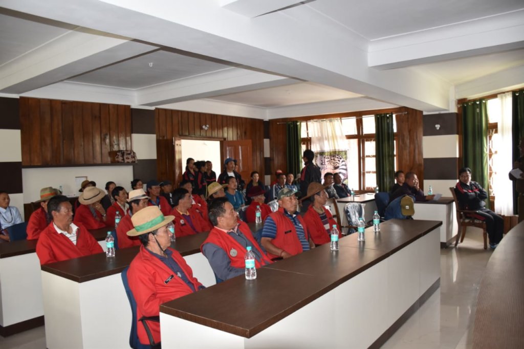 Located in the rich biodiverse Eastern Himalayan foothills at a height of 6,000 ft in Shi Yomi district of Arunachal Pradesh is the village of Mechuka. Inhabited by the indigenous clan of Memba, Adi, Lebo and Tagin communities, even today the region traditionally practices hunting and fishing in the region. Earlier hunting was merely for self-consumption purposes but today the increase in demand and the desire to make additional income out of it, has affected several species that were once commonly found in the landscape. However, many communities in remote areas of Arunachal Pradesh even today abide by the customary rules to avoid overharvesting and help maintain the balance in the ecosystem. Last year WTI, with the help of GlobalGiving supported the Mechuka Ecotourism and Conservation Society (MECS) to create a platform to bring together District council members, Forest department, Village heads and community groups for a meeting to discuss the status of hunting and need for some regulation in the landscape.
