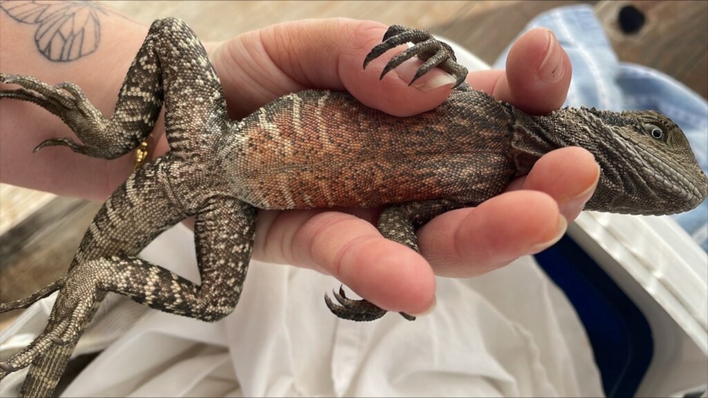 Last month a member of the public found a Water Dragon stuck in the lid of her pool filter. Whilst the lid was able to be removed, the lizard appeared to be firmly stuck. She called WIRES and we dispatched our Emergency Responder Holly.