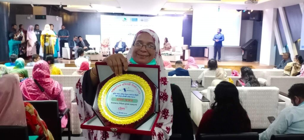 On the 3rd December 2022 Observance of IDDP (International day of Disable persons) International Development agency of CBM Global Bangladesh given honored & Awarded grass root level leaders Women with Physically Challenged to Mrs.Hamida Akhter ,Chair/Leader of “Ekota Protibandhi Self Help Group” ,Jhalochar, Bahadurabad Union, Dewangonj Upazilla , Jamalpur district for Contribute Inclusive Development in the Community. On behalf of the Organization we are proud to honored the carried over activities. We are Thanks to CBM Global Bangladesh for inspirational & motivational awarded to grass root level leaders of the Communities. Here with our appeal to support to us for carried over the program for Inclusive development and sustainable community.