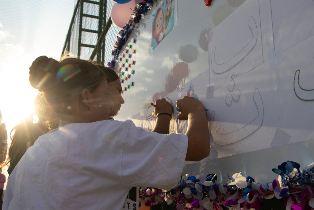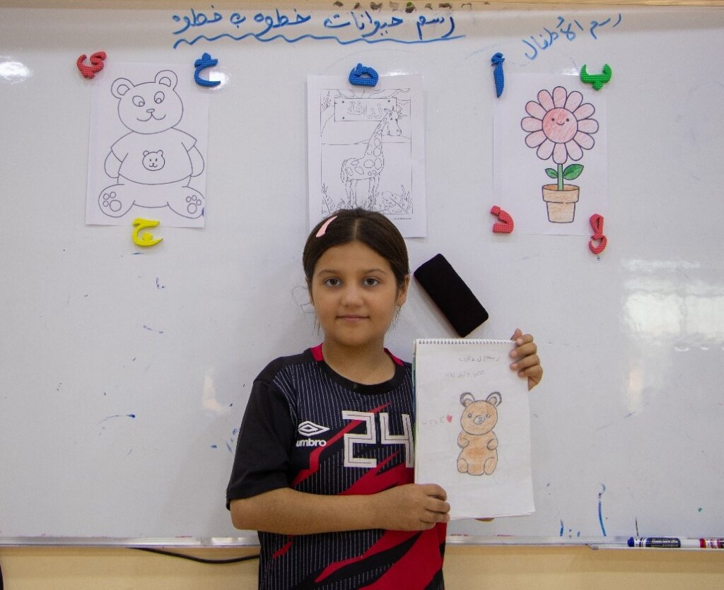She currently attends 4th grade and participates enthusiastically in our activities focused on resilience building, Arabic, and English language learning. Before joining the Safe Space, she had very limited exposure to English. Today, she proudly shares: