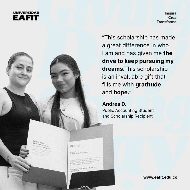 At EAFIT, we deeply believe in the power of education—its ability to open pathways, transform realities, and support those who dream of a different future. We understand education as a force that inspires lives, creates knowledge, and transforms society.