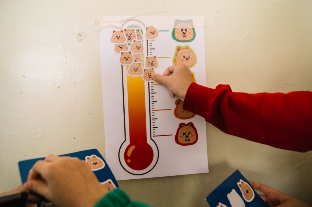 We've also designed special "alert backpacks" that teachers can grab on their way to the shelter. They're filled with tools like board games and a psychological support card game to keep students engaged and calm, even during long alerts.