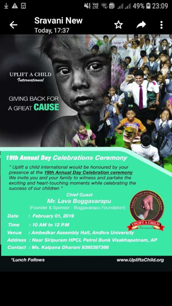 It was the first time for me to visit Kakinada on Uplift a Child. We have a few children there since 2 years. Sudhakar Chinta is looking after them and have arranged for a small little gathering. Mr. CMJ Suvarna Raj, my mentor and school principal from childhood was present for the event. Talked to the parents and children and almost everyone poured out their heart to speak freely and tell about all of their experiences. It was a small program, but best event and it has inspired everyone there to plan and do well in life. Kakinada is the birth place of Boggavarapu Foundation. Once arrived there, made a call to Boggavarapu Akk, Dr. Satya Gnaneshwari and talked to her while remembering Dr. Boggavarapu Subbarao and his family members all over the world. It was an honor to give the Boggavarapu award to one of our Kakinada Uplift a Child students and have told about the founders Lava and Navin Boggavarapu. After the event, Sudhakar Chinta and CMJ Suvarna Raj sir have invited us for dinner where we spent a quality time while listening to a beautiful talented singer (Sudhakar’s daughter). It was a fun filled evening left with great memories of Kakinada.